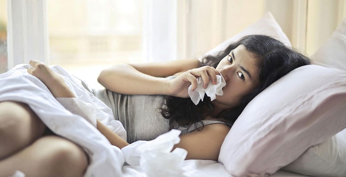 Simptomi Med simptome spadajo kašelj, vročina, izcedek ali zamašen nos, vneto grlo, piskanje v prsih, težko dihanje in izpuščaji.