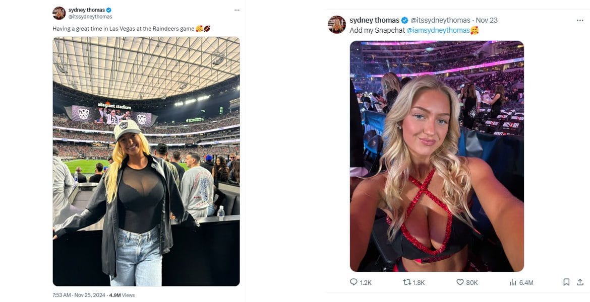 Gledalce pred televizijskimi zasloni je vsekakor pritegnila 20-letnica, ki je bila v središču pozornosti med boksarskim dvobojem v petek, 15. novembra. Sydney, zdaj študentka Univerze v Alabami, je v ekskluzivnem intervjuju za Us Weekly povedala, da je čez noč zbrala več kot 350 tisoč sledilcev na Instagramu in TikToku.
