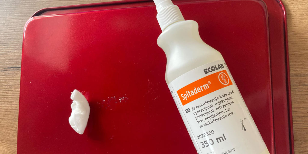 Druga učinkovita metoda vključuje uporabo razkužil na bazi alkohola, kot je Spitaderm. Ta razkužila ne odstranjujejo le bakterij, temveč so tudi odlično topilo za lepila.