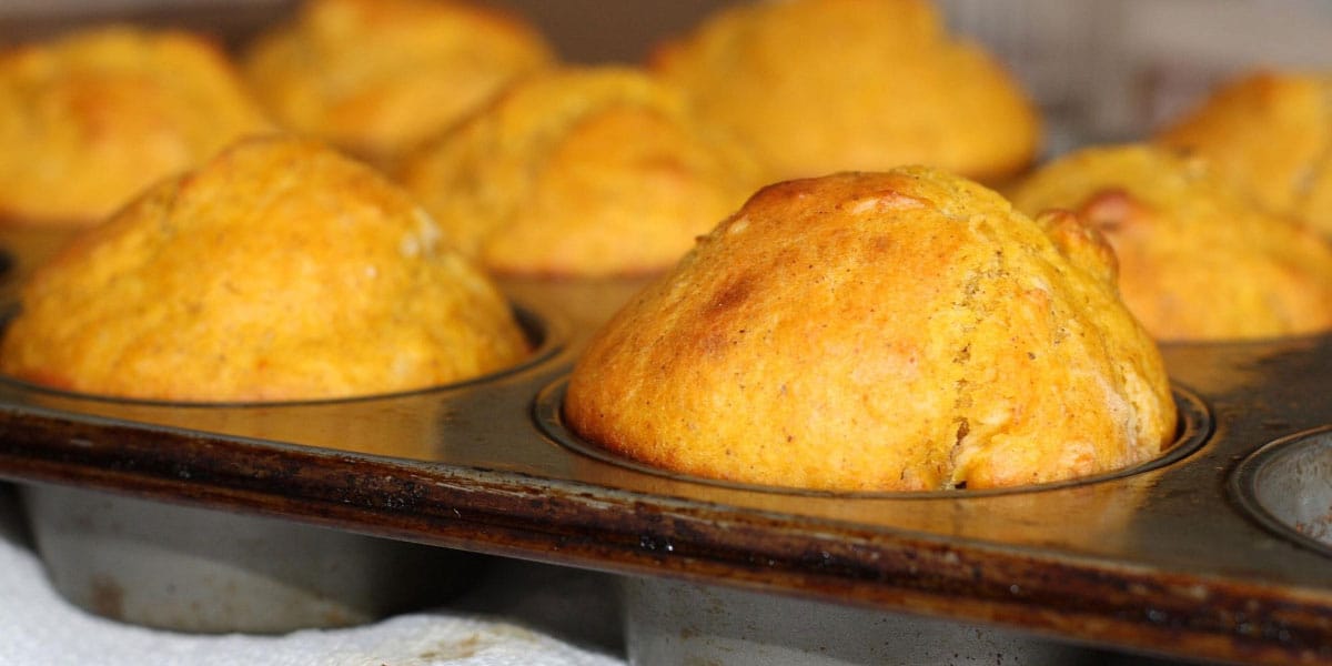 - Peci 20–25 minut, oziroma dokler muffini ne postanejo zlato rjavi in čvrsti na dotik. Zobotrebec, ki ga zapičiš v sredino, mora priti ven suh.